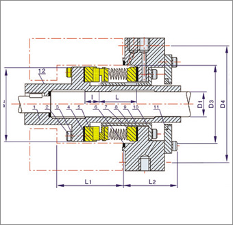 特點:典型靜止式波紋管機封結構,法蘭聯接,強制